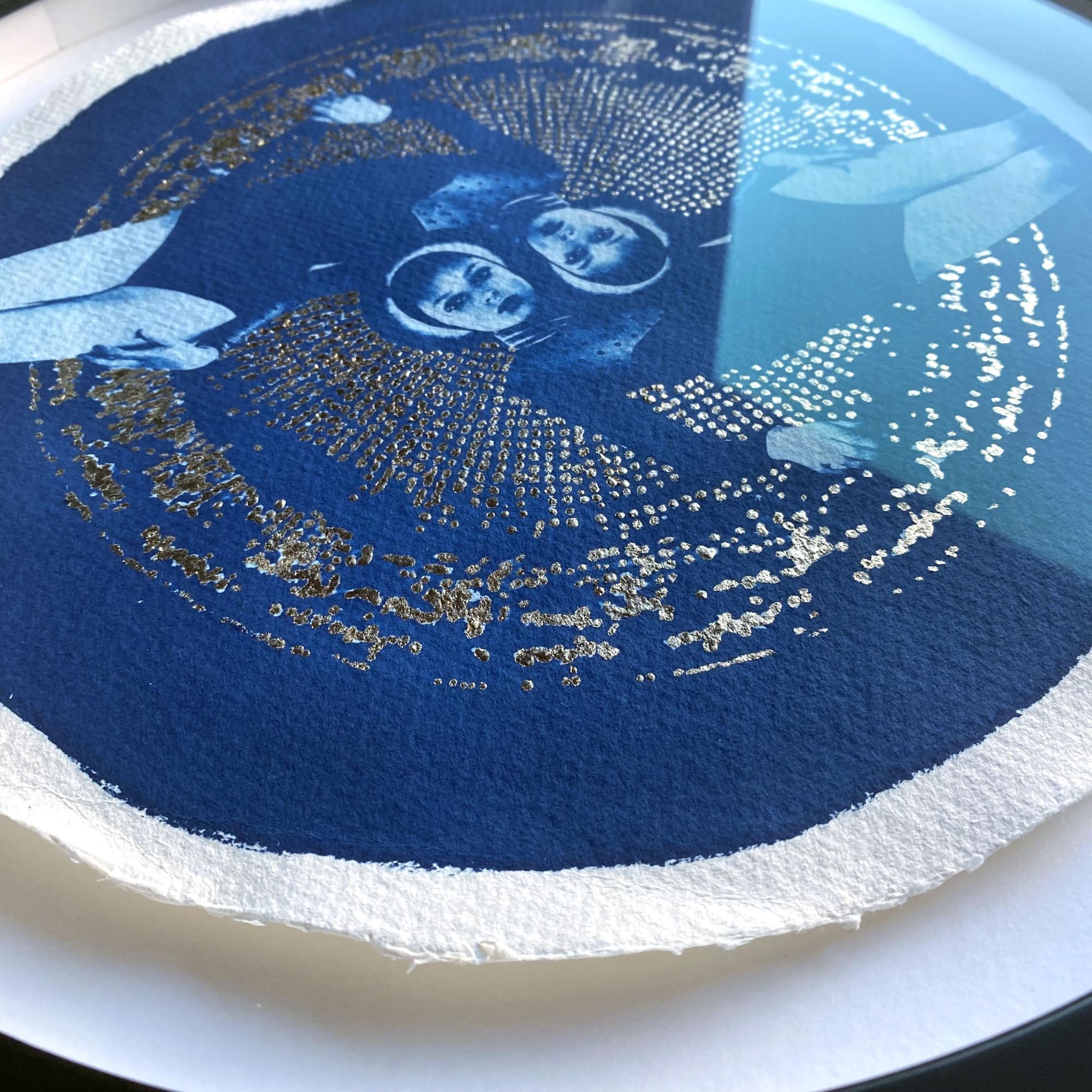 Cyanotype, handmade paper, 22-carat moon gold leaf