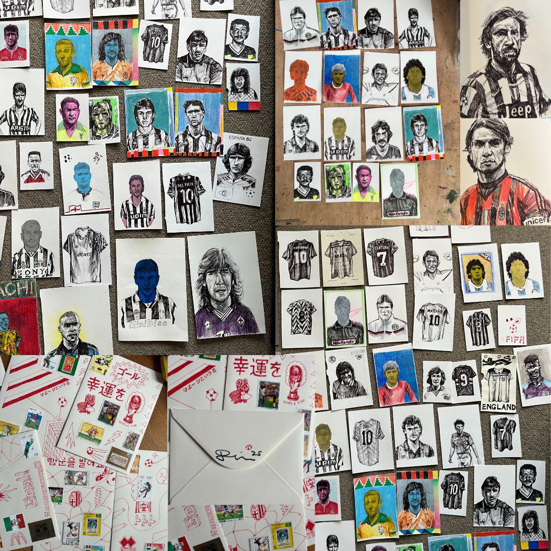 Presented in a hand embellished envelope including original drawings and Italia 90 stamps from around the world.