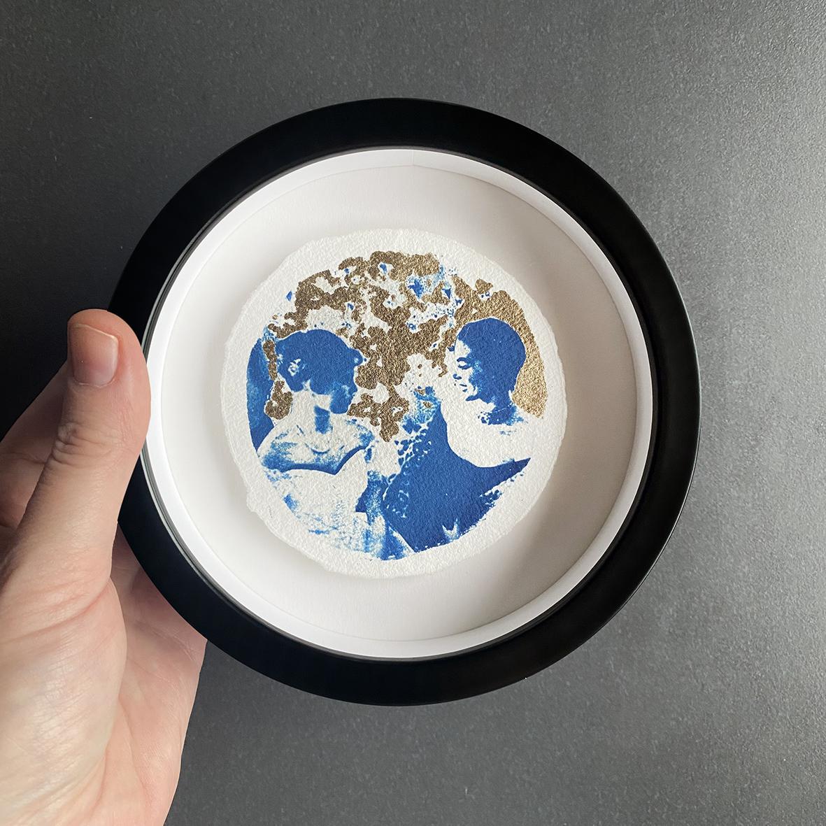 Cyanotype, handmade paper, 22-carat moon gold leaf